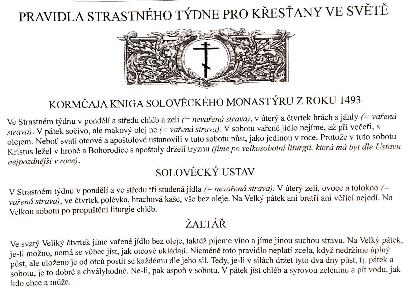 K zamyšlení nad otázkami půstu (z došlé pošty)